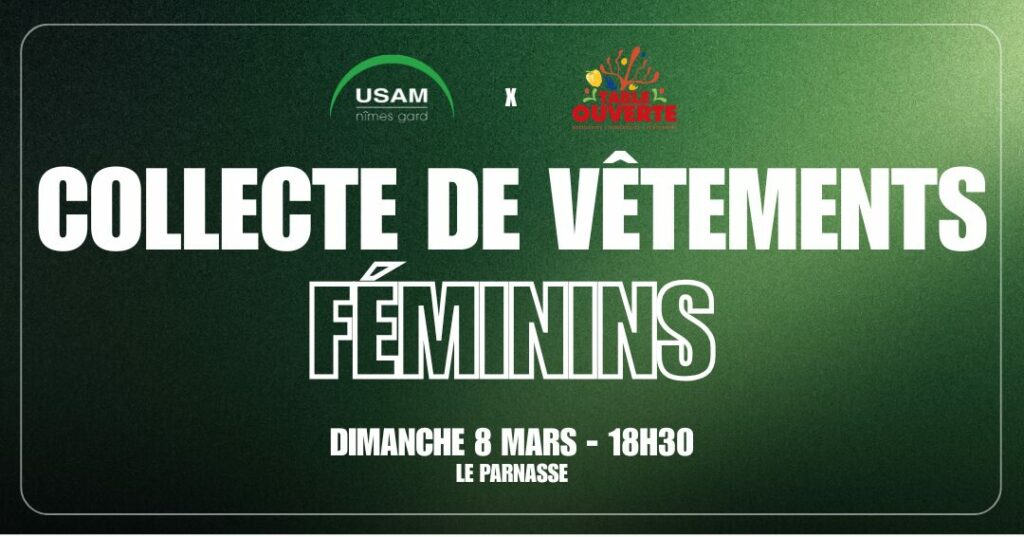 À l’occasion de la Journée Internationale des Droits des Femmes, l’USAM Nîmes Gard organise une grande collecte de vêtements féminins le dimanche 8 mars, à l’occasion de la rencontre USAM Nîmes Gard – Limoges, au profit de l’association Table Ouverte.