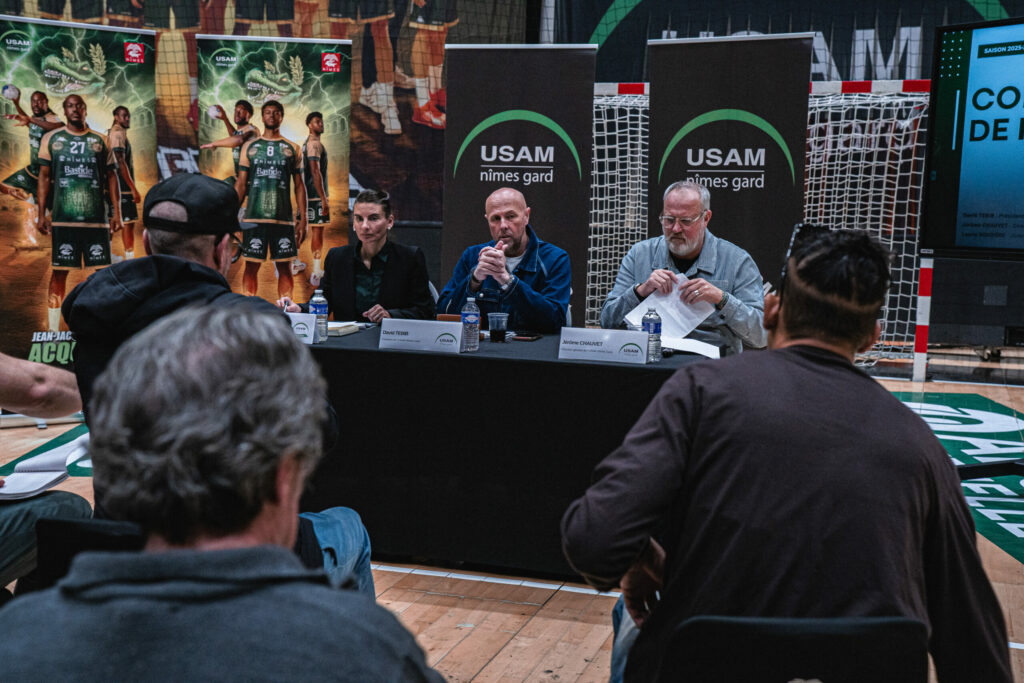 Ce mardi, au Parnasse, l’USAM Nîmes Gard a tenu une conférence de presse en présence de David Tebib (Président), Jérôme Chauvet (Directeur général) et Laurie Roudière (Directrice sportive de la section féminine). L’occasion de faire un point sur la fin de saison 2025-2026 et de présenter les grandes orientations du club pour les saisons à venir.