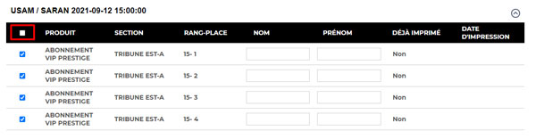 Si plusieurs matchs sont ouverts, vous pouvez sélectionner des places de différents matchs et les recevoir en un seul envoi.